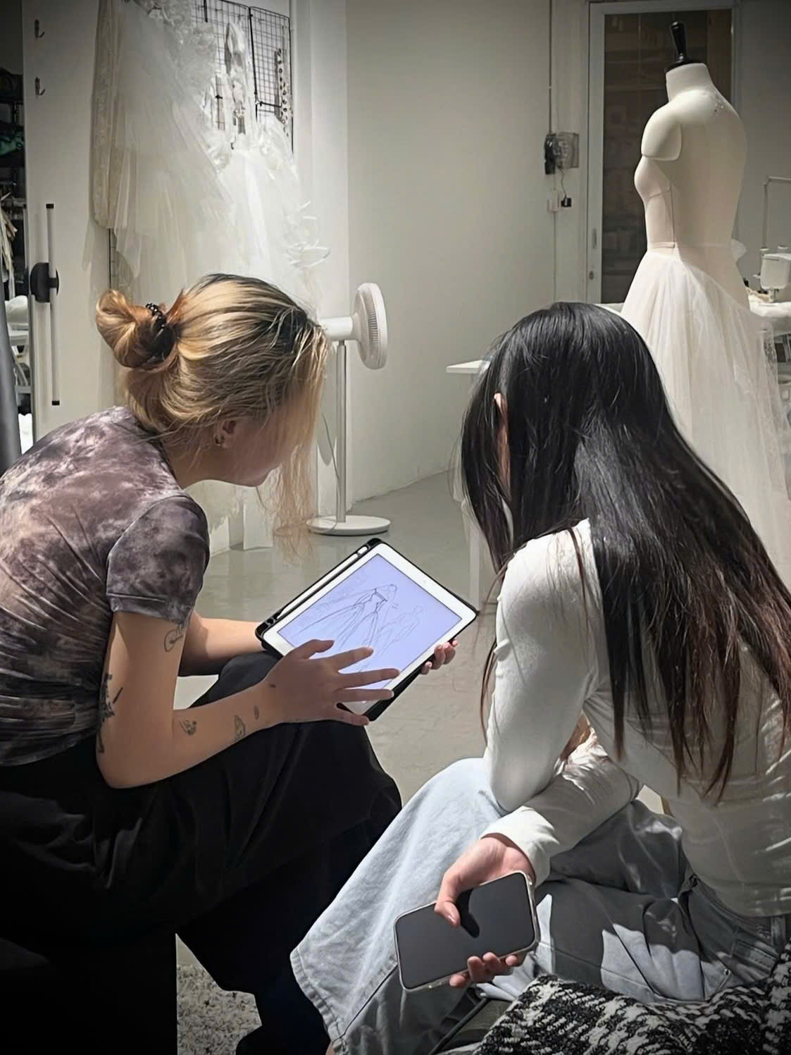 May đo váy cưới dựa trên thiết kế có sẵn.